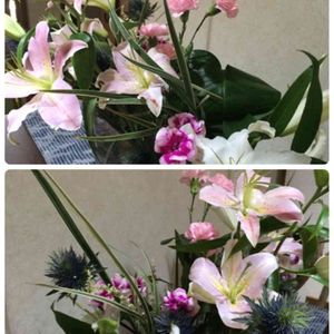 花りんさんの福引一等❣️ 切り花五本プレゼント🎁 お花が大好きな母が明日退院します。 最初にお出迎えする玄関に飾って来ました♬