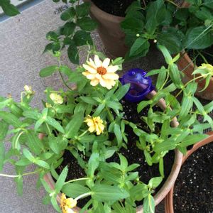 ゆめタウンで購入 5ポットで 250円 超お買得 花ものが仲間入り🌸 ムラサキのカエルちゃんが 当番です❗️