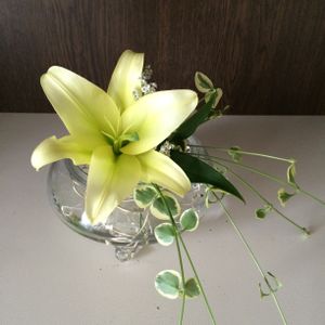 スーパーで買ったゆり 白い小花 アレンジしてみました✨
