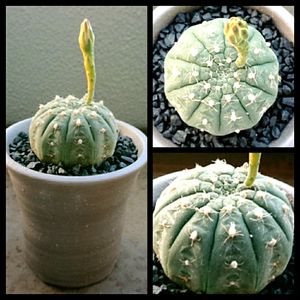 サボテン科 ギムノカリキウム属 ラゴネシー。😸😸 おはようございます。😋 今朝は久しぶりに良い天気。台風がくると、何かと大変なんで来てほしくないですね…😅 花の蕾がひょっこりニョキニョキのびてきました。(笑)😁 ラゴネシーは何色の花が咲くのかな~🎵 楽しみです。😊