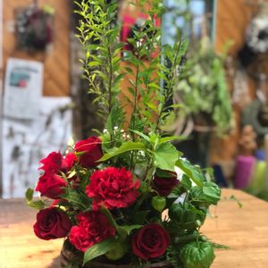 グリーンホオズキ第3弾!カーネとバラのアレンジにイイ味出してます? 小さい実がちょこんとかわいい