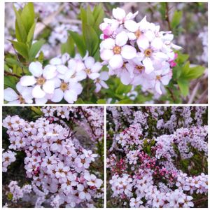 昨日投稿のピンク雪柳… コラージュの下段の気になった混芽をもう一度見て来ました もしかして裏側を見たらどうかしらと思いましたが 裏には何も無く 結局何らかの トラブルと考えるより無いですね 右上では 混芽から大分花茎が立ち上がって赤いコロンとした蕾がバラけていますね 開花までもう少し… もう一株の方では 先程の投稿のように 今朝やっと一輪咲きました 🏷金曜日の蕾たち 🏷蕾応援団 🏷ちっちゃいものクラブ