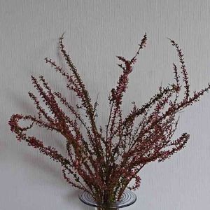 今朝、朝市で購入したピンクの雪柳。今は蕾が多く、全体的に赤く見えます。ざっくりと花瓶に活けました。