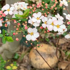 蕾はピンク色 開くと白に近い淡いピンクの雪柳 清楚でひっそりと咲いています💮🌿💗😊💕