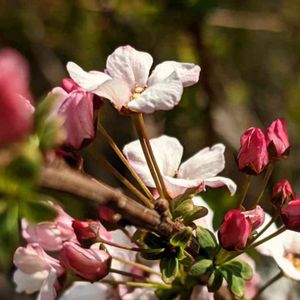 ピンクユキヤナギ 蕾の時は赤味噌のある濃いピンク、開いてくるにつれ、薄い(淡い)ピンクな染まります。
