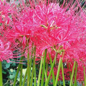 ヒガンバナの群集 なんとなく…真っ赤な鳥居が建ち並ぶ神秘的な光景へとイメージが飛ぶ( ´ ˵ ° ~ ° ˵ )⛩ 葉っぱのない真っ直ぐな茎が そう見せるのかもと思って、、 でもよくよく考えたら…葉っぱなしで光合成?!って不思議になり 調べてみました📱 ヒガンバナは花が終わったら葉を出し、冬に成長するそうです 他の植物が葉を落とし冬を乗り越えようとする間、ヒガンバナは葉を生やし成長し しっかり養分を蓄えておく、春を迎えると葉を落としひっそりし、そしてまた秋になると花だけにその栄養を注ぎ咲かせるそうです そこにはヒガンバナ独自の 生き抜く戦術があるんだなと、美しく感じました まわりと異なる生き方、ずれた(ずらした)生き方、、自分のペースでしっかり生きればいい…ちょっと長く喋っちゃいましたが、そんなことを思いました(名月のせいだ🎑) おやすみなさい🌛