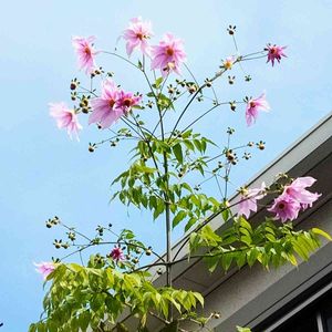 秋晴れの暖かい空✨と 見上げるほどの皇帝ダリア! うん、堂々としてるᕦ⊙෴⊙ᕤ まさしく「ダリア界の王様」👑