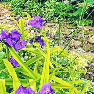 ムラサキツユクサ × エゴポディウムの花 毎年お気に入りのコーナーです🥰🥰 エゴポディウムは綺麗な斑入りで大好きなんですが…… 毎年拡大早すぎてちと怖い😎😅