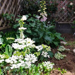 てっぺんに違う形の花が咲くジギタリスです!! 色は選べず二株買って二株とも白😅 残念💦
