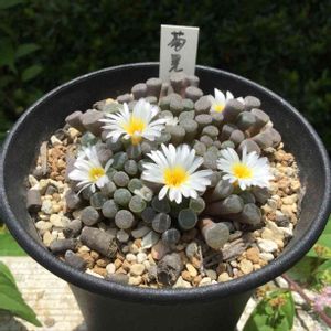 フリチア 菊晃玉 咲きました\( ˆoˆ )/ 3度目の夏、どんどん花芽が上がって来ています☺️ 花は白色に薄いピンクの縁どりですが、この株は白が強いです👀 陽の光が強いと花が綺麗に開きます🌞👍 ついでに 陽の光が強いと柱の部分がぎゅっと集まって縮まり、タイルみたいになります🌞🌞 ピンク花のフリチアも欲しいなあー