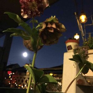 こんばんは☆。.:*・゜ 今年お迎えしたクリローさん ダブル レッドグレープ バイカラー💜 2輪目咲きました🌸✨ 今日も1日お疲れ様でした*ˊᵕˋ* 月がとても綺麗だったので📸💕