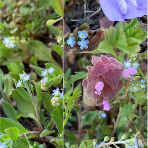 道端で出会った小さなお花たち 寄せ植えみたいに寄り添って咲いてます 🌸💙💚💕🍀