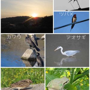 朝ウォーキングで出会った 野鳥さん+カエルさん 今日も夏日☀️ 暑いですね😵 早朝ウォーキングしててよかった😆
