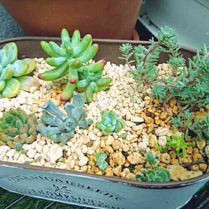エケベリア丼! 昨日ゲットした子たちと、 家にあったセンペルビウムの子株を乗せて完成♡ これから綺麗に色づいてくれるといいなーー