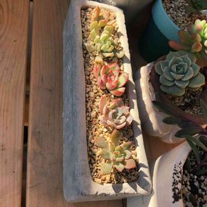 以前寄せ植えした子たち🌱 ひと回り大きくなった気がします! 買った当時は開き切っていたけど、 中心部分はキュッとしてきました♡ やっぱり締まった方が可愛いですね😍