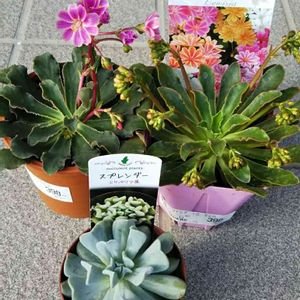 おはようございます✨💖 昨日は、ずっと探していたレウィシアさんに出会えました~✲ฺ٩(ˊᗜˋ*)و✲゚ฺ*💕 GSを始めて、最初にクリップ📎したのが「ぽかぽかなお」さんの7月5日のレウィシアさんのpicでした❣️ 以来ずっと探し続け、ついに巡り会えたんです~😆 1鉢はピンクの開花株、もう1鉢はつぼみのものをお迎えしました💞 つぼみの方の色はわかりませんので、咲いてからのお楽しみです🎶 夏越しが難しいようですが、頑張って育てます(。•̀ᴗ-)و ̑̑✧ 下に写っているスプレンダーさんも一緒にお迎えしましたよ~🎶