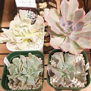 こんな感じは、いかがでしょうか? びよ~ん、活かし♪ヽ(*´∀`)ノ 中央のひらひらした白っぽい子の名前がでてこない… (;∀; ) 分かる方教えてください。 ※トップシーダービーと教えていただきました。いろいろな名前があるみたいですね。私が最初に覚えたのは(忘れてたくせに)スプレンダーで、他にトップスプレンダー、トップシィダビィとか。 いっぱいあるのもタグがいろいろできてしまって困ったものですね。 (。・ω・。)ゞ 【masakoの多肉No.54】