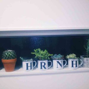 玄関の窓辺の多肉さんたちの、入れ物を可愛いく変身させました★