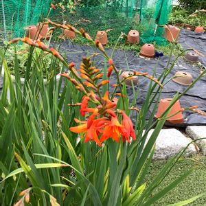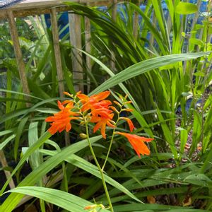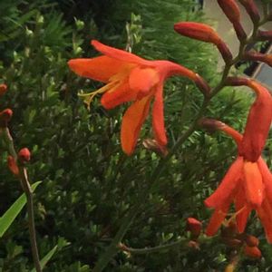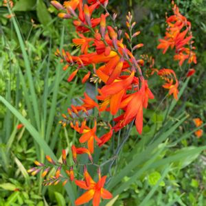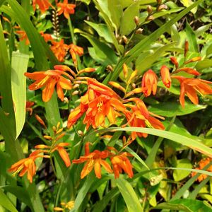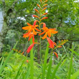 クロコスミア(ヒメヒオウギスイセン) 散歩途中の農道脇の林で、見かけました。