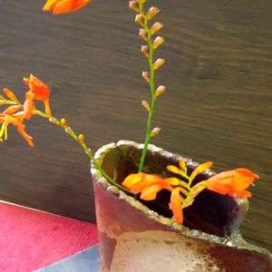 おはようございます😃 昨夜仕事帰りの主人が、実家のヒメヒオウギスイセンを一輪だけ摘んできてくれました。 何かたくらんでるな😅⁉️ 案の定でしたが😵 お花に罪はないので🧡 一輪挿しに🤗 大雨警報地域の皆様、本当に気をつけてくださいね☂️