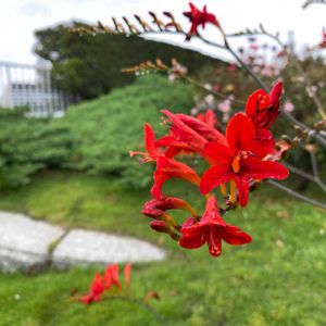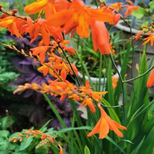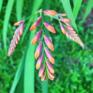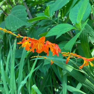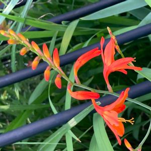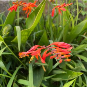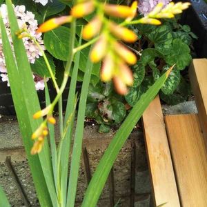 モントブレチアが咲き始めました✨🧡✨ 穂状に付いた蕾(咲いてる花も合わせて)は、全部で24個😳 大家族です💕