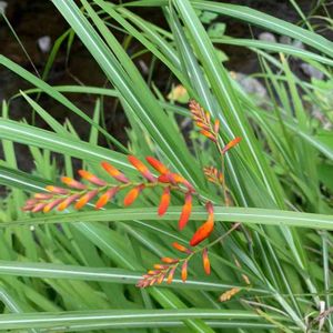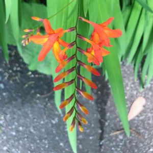 道端でパッと綺麗な蕾に惹かれました🧡 ヒメヒオウギスイセン(姫檜扇水仙) アヤメ科 ヒメトショウブ属 このお花を乾燥させ湯に浸すとサフランの香りがするんですって。゚ .ʚ(✿´⌣`✿)ɞ. ゚。🧡 「サフランの香り」を意味するギリシャ語クロコスミアがその学名になっています。 スイセンと名がついてるけど水仙のお仲間さんではありません🙅♀️ お花が咲くと赤みを帯びた橙色𓂃 𓈒𓏸🍊❣️ 繁殖力が旺盛です𖡼.𖤣𖥧𖡼.𖤣𖥧⚘