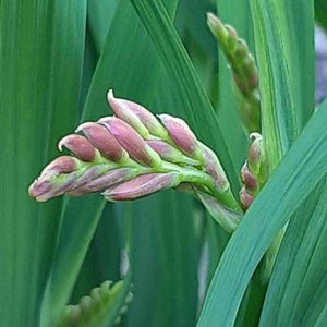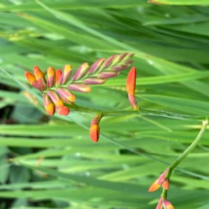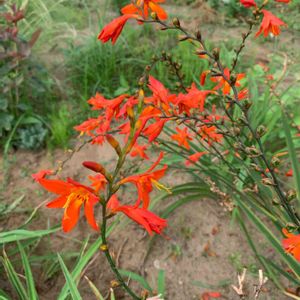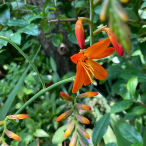 ❤️🧡ヒメヒオウギズイセン(モントブレチア)🧡❤️ 仕事の帰り道、橋の近くで、一際鮮やかなお花が目を惹き…👀 「おっ〜、美しい✨☺️」とパチリ🤳 夕方、風が吹いて🌬ユラユラ揺れるので、うつむきの可愛い姿を撮るのに、一苦労😅 🧡オレンジ色は心を明るくさせますね〜💕 💐花言葉…『陽気』 『謙譲の美』 下向きに咲く=控え目、花の色が鮮やか=美しいということから『謙譲の美』という花言葉ができたといわれています。 漢字で「檜扇水仙(ヒオウギズイセン)」と表記します。 檜扇とは、ヒノキなどから作られた木製の扇のことで、ヒオウギズイセンの葉のつき方が檜扇の形に似ていること、花がスイセンに似ていることから、この名前がつきました。 南アフリカ原産で、鮮やかな朱色の花が目を引きます。 朱色のほか、赤、オレンジ、ピンク、白、紫色など、花色は豊富。