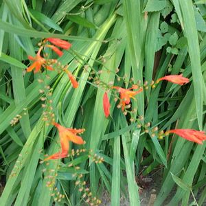 ヒメヒオウギスイセンの朱色が綺麗 似ている名前で『ヒメヒオウギ』って、とてもかわいい花があるのだけど 以前投稿した時(5\13)にヒメヒオウギスイセンってネーミングした気がして確認したらやっぱり間違えてた😆 ヒメヒオウギズイセン(姫檜扇水仙)は アヤメ科ヒオウギズイセン属でモントブレチア(クロコスミア)ともいう…花期は今頃7〜9月 ヒメヒオウギ(姫檜扇)はアヤメ科・フリージア属で花期は4〜5月