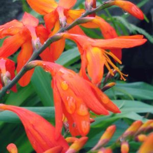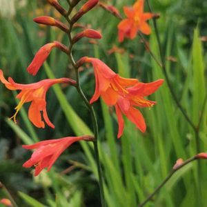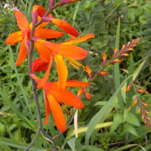 【姫檜扇水仙】《アヤメ科》 花言葉 「謙譲の美」「陽気」 別名 ワトソニア モントブレチア クロコスミア ヒオウギズイセンと 姫唐菖蒲(ヒメトウショウブ)の 交配種です。 属名の学名「Crocosmia(クロコスミア)」は、ギリシア語の「crokos(サフラン)」と「osme(匂い)」を語源とし、乾燥させた花をお湯に浸すとサフランのような香りがすることに由来するといわれます。 属名の異名(シノニム)の「Montbretia(モントブレチア)」は、フランスの植物学者「Ernest Coquebert de Montbret(コクベール・ド・モンブレ / 1780~1801)」の名前にちなみます。 2022.6.17