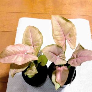 ダイソーでよく目にしていた ピンクの葉のシンゴニウム 可愛いなーと思っていたけど いやいや…これ以上増やすのは厳選せねばとか 300円かぁ~ピンク可愛いなぁ…と あちこちのダイソーで見かける事数回 毎回ダイソーで見るたびに 悩むくらいなら買っちゃうか‼️と ついにお迎え😄 シンゴニウムのネオンってやつなのかな? スモーキーピンクで良い色だけど 写真ではうまく写らない色だなぁ😅 シンゴニウムって初めてだけど 調べてみたら 市販されているのは幼葉で本当は モンステラみたいにツルで大きくなる⁉️ え?ホントに(|| ゜Д゜) この色でモンステラみたいに 大きくなったら凄いんじゃないの⁉️ どこまで大きくなるか…頑張ろう😁