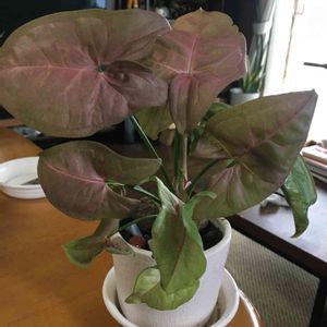 今日の花 🌿シンゴニウム(ネオン)🌿 このほんのりピンク色がたまらん🎵 週末に寄せ植えしようとミニサイズを購入していました。それをご紹介させていただきます。
