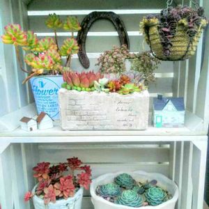 見事な多肉さんに大興奮 アヒャヒャヒャヽ(´>∀<`*)ノアヒャヒャヒャ!! ひたすら眺めては 奇声あげてたら ダンナさんが買ってくれるって♪ 遠慮なく選びました。(`・ ω・´)ゞビシッ!! どんぶりサイズのリラシナ どんぶりサイズのサブセシリス どんぶりサイズの十二の巻 他にもイロイロと(*≧m≦*) でも これ全部で2500円ぐらい。 さぁて 置き場所悩まなきゃ♥