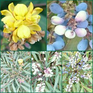 1/24(木)🌔🌠☆。.:*・゜ 💛💙🌿ホソバヒイラギナンテン🌿♡ 柊南天 1/23 駅前広場公園にて📷✨