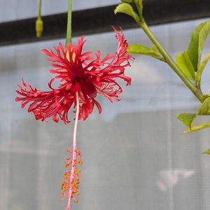 Hibiscus schizopetalus フウリンブッソウゲ 2年前に挿し木をした株です。 もう11月も下旬になろうとしているのにまだ咲いてます😅 このくらいコンパクトに咲いてくれれば扱いやすいんですがね… 親株は好き放題に伸びてるので室内に取り込むためにバッサリ剪定をします🌿