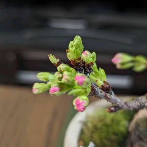 家の中の小さな桜がきれいなピンク色の蕾をつけました。 咲くのが楽しみ。