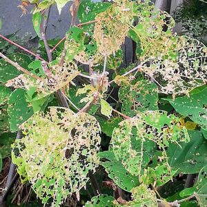 おはようございます🌱 🌿🐛虫は芸術家❓😅 神田川のアカメガシワ🌱