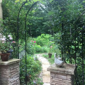 お庭と駐車場との区切りをつけようと、ガーデンアーチを購入しました❗ アイビーをはわせて庭への入り口にするためにっ‼️ でも…下にあるアイアンの柵がカナズチで叩いても土に入ってくれず。。 皆さんどうやって土に入れていますか⁉️