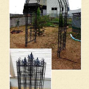 ガーデンアーチと柵をさしてみました‼️ アーチの下にはアイビーを6つ植えています。 柵の部分にもアイビーを植えて、這わせていく予定です😄