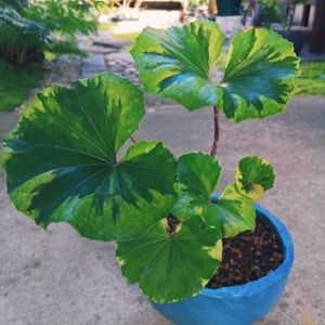 石蕗"銀月" 1つの株を2つに分けて、1つは鉢植え、1つは庭に植えました。 イイなぁ…この色☺️ 最近の皆様の投稿で、名前の横にハッシュタグついてるけどアレってどうやってやるの?