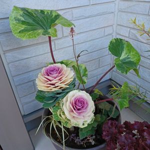 1月26日に作った寄せ植えが 春になってだいぶ違う雰囲気になりました😄 葉牡丹は菜の花みたい🌸 ティアレラも次々に新しい花を咲かせてくれてます🎵