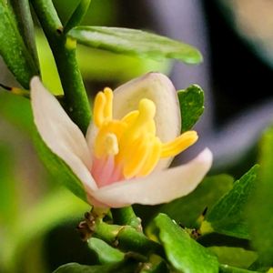フィンガーライムの花が咲きました\(^o^)/ 他の蕾も咲いてくれますように(人*´∀`)。*゚+