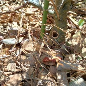 1カ月ぶりに帰省したら、フィンガーライム枯れてた。根元に大きな穴あいてるし。