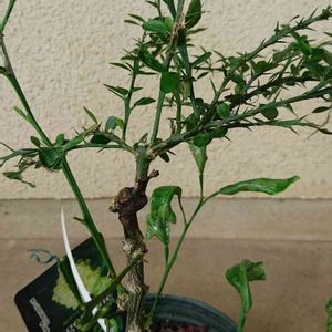 フィンガーライム 201908 2年ほど前に購入したフィンガーライム 接ぎ木されているのが土から30cmの位置!! どうなるのか様子を見守っていたけれど、台木のカラタチ?の枝は欠いても欠いても出てきてしまい、肝心のフィンガーライムは育たず… ただいま交換要請中🌀