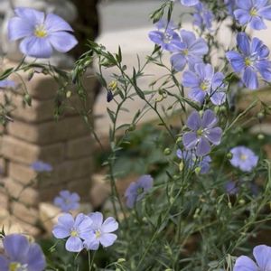 宿根アマ 学名:Linum perenne 別名:ペレニアルフラックス この株だけ咲きました〜💙 敷地の外…歩道との境目に零れ種が落ちて2年前から生えてるけど、今年はすごく大きくなってびっくり‼️ よく見ると境界標のギリギリ内側。 …敷地外じゃなくて、敷地内だわ😁👍 今日も風が強くてなかなかいいpicが撮れず…なんとか花2つだけピント合ったけど…花びらの端が風でめくれてる😅 アマに宿根じゃないのがあることは GSで知りました😊 アマといえばコレ‼️って思ってた。 今年は花友さんから頂いた一年草のアマ ‘リナム’のタネを蒔いたので… 違いをじっくり見てみます( ⸝⸝•ᴗ•⸝⸝ )੭⁾⁾ 写真で見たところ… 蕊の違いだけははっきりわかる👍 他に違いはあるのかな???