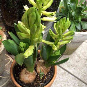 ヒヤシンスが徒長気味🤨 下から新しいこがもりもり 私だけかなって思ったら 同じところで購入した全員徒長😂 寄せ植えしたスノードロップはすくすく成長中です✨