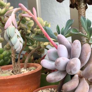 西側の手すりに放置している多肉たちも、花芽が出てました。