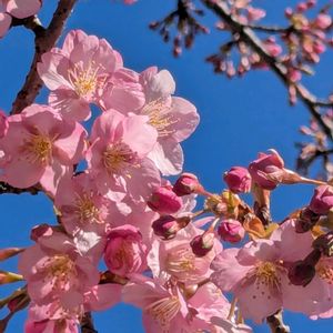 一足早く南足柄の「桜まつり」 に行って参りました🌸💕「春めき桜」満開でした🙆♀️ 今日の花「ボケ」も本日の撮影です😉