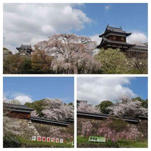 郡山城跡と桜 🏯🌸 *日本百名城 *日本桜名所100選 通院の途中で。 車窓(電車)から撮影しました👀📷️✨ お城祭りやライトアップ の最中、下車して見たかった~🌸🏯