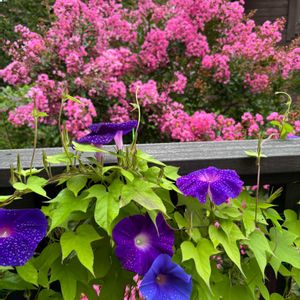 こんにちは😃 お盆休みもあと、2日 朝からBBQ🍖⤵️ ①百日紅と朝顔 ②百日紅の花と蕾 ③西洋朝顔ヘブンリーブルー💙 ④西洋朝顔ブルースター🟣 ⑤萼紫陽花ティンカーベル🟣 この連休、富士山は、一度も見えませんでした⤵️ 残念😢