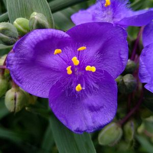 ①〜③ 今日のお花🔸ムラサキツユクサ🔸 5月から最近まで咲いていました💜 (6月中旬撮影) ④ チョウセンヨメナはこの暑さの中、涼しげに咲いてくれています🩵 ⑤ クガイソウ、だいぶ小ぶりになって3番花(?)が咲きました💜🎶